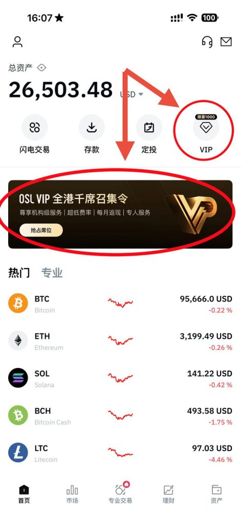 與傳統金融機構動輒百萬級的私人銀行門檻相比,OSL將VIP1門檻設定在1萬美金(約7.8萬港幣),這對中小型投資者來說相當友善。完成OSL開戶後,只要滿足以下任一條件即可: